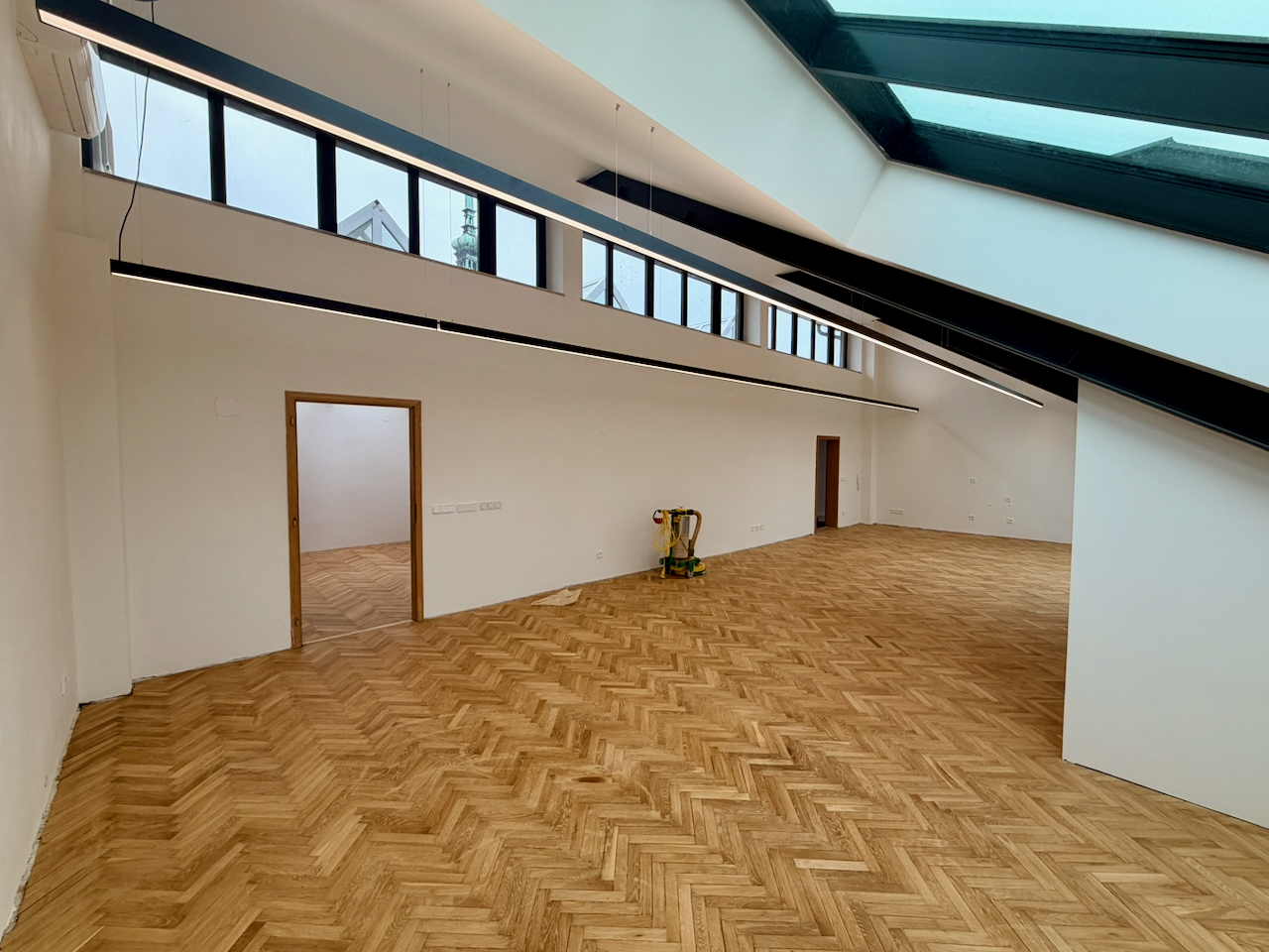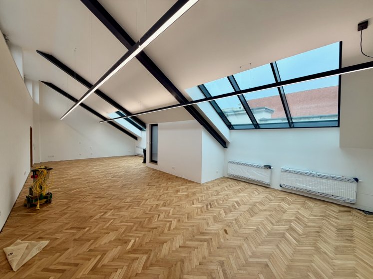 Pronájem nově rekonstruované samostatné jednotky sestávající ze 3 kanceláří (17 + 76 + 82 m2), panoramatické terasy s výhledem na náměstí, kuchyňského koutu a samostatných toalet.